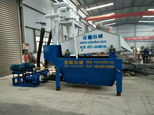 細(xì)沙回收機(jī)整套設(shè)備主要由振動(dòng)電機(jī)、真空高壓泵、高壓分離器、脫水篩、清洗槽、返料箱等組成。